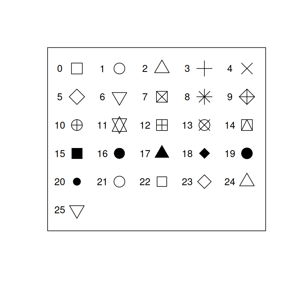 Also, change the plotting character and colors with the \(\texttt{\color{brown}{col}}\) argument.
